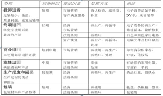 美国逆向物流执行协会(RLEC)(1999)则认为:逆向物流是商品从典型的销售终端向其上一节点的流动过程,其目的在于补救商品的缺陷,恢复商品价值,或者对其实施正确处置。
