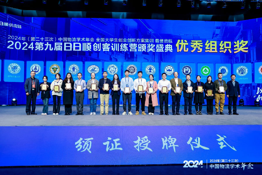 中国物流学会副会长、中国物流与采购联合会副秘书长杨国栋主持了2024年中国物流学会、中国物流与采购联合会研究课题一等奖,2024年中国物流学术年会论文一等奖,2024年物华图书奖一等奖,2024第九届日日顺创客训练营优秀组织奖,2024第九届日日顺创客训练营铜奖,2024第九届日日顺创客训练营银奖及2024第九届日日顺创客训练营金奖的颁奖仪式。